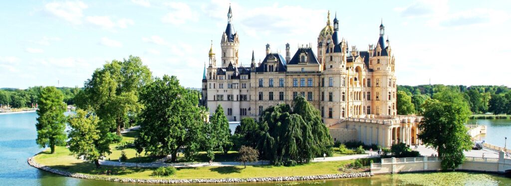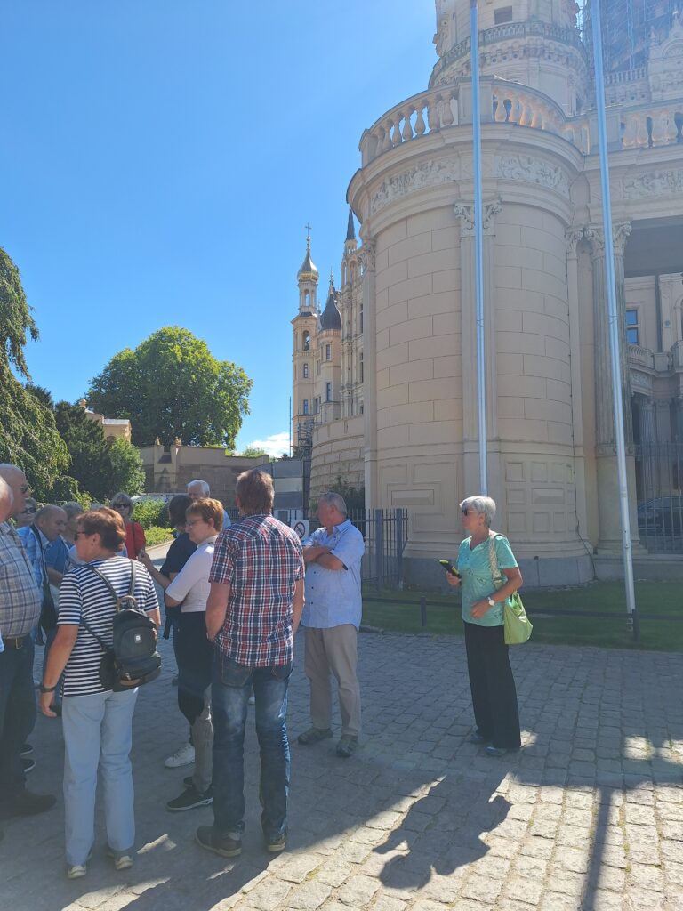 In der Landeshauptstadt von Mecklenburg-Vorpommern, der ehemaligen Residenzstadt der mecklenburgischen Herzöge Schwerin erwartete uns eine kundige Reiseleiterin zur Stadtrundfahrt. Sie zeigte uns vor allem die Gebäude, die neben dem Schloss zum Weltkulturerbe „Residenzensemble Schwerin“ gehören und wesentlich unter Leitung des damaligen Hofbaumeisters Georg Adolph Demmler erbaut wurden. So sahen wir u.a. die Staatskanzlei, Ministerien, das Finanzamt, Ehemalige Kasernen, den ehemaligen Marstall, das Theater und das Landesmuseum aber auch moderne neue Gebäude sowie Bauten aus der DDR-Zeit wie die Sport- und Kongresshalle.
