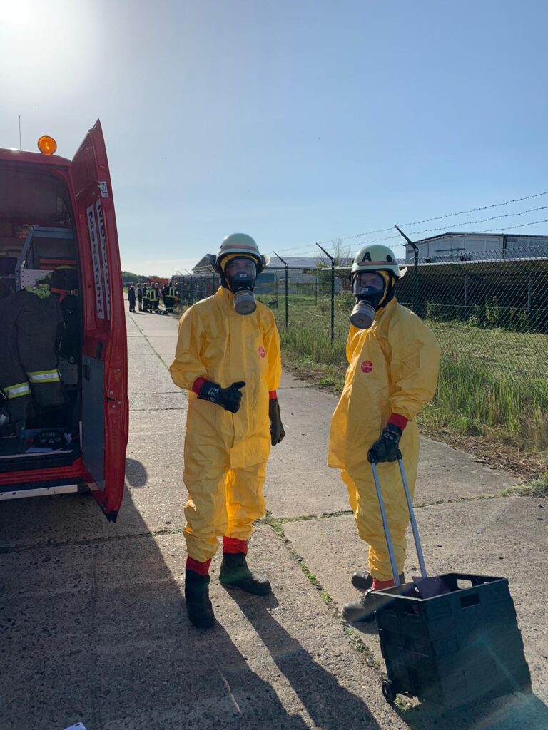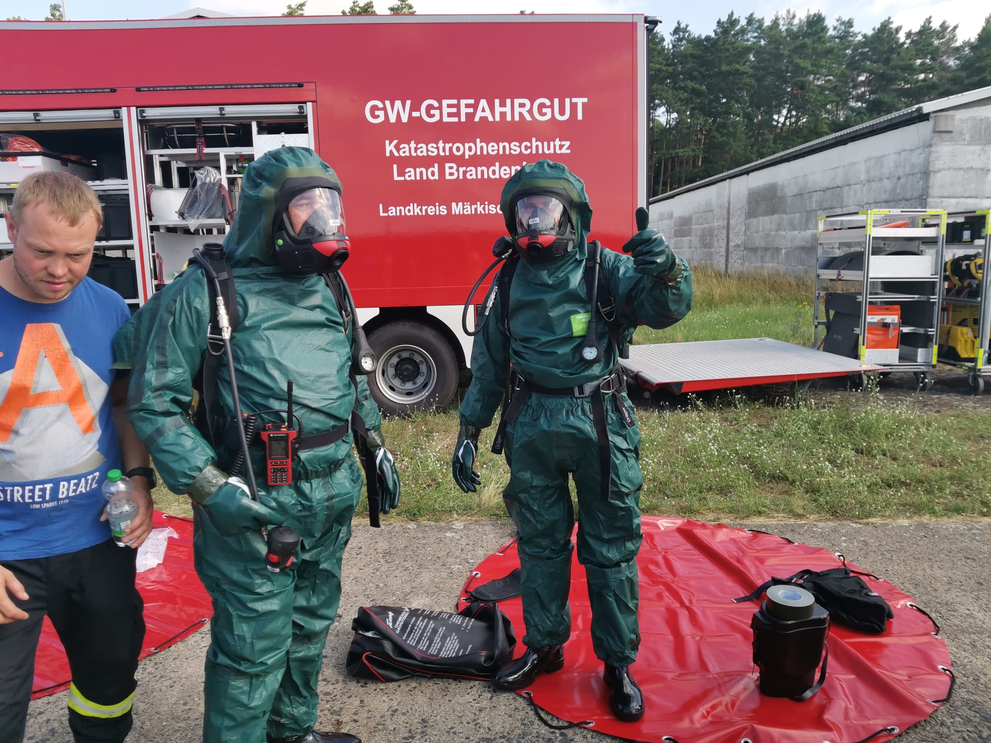 Durch die Besatzung des CBRN (ABC) -Erkunders der FF Petershagen wurde dabei die Art und Intensität der frei gesetzten schädlichen Stoffe und Gase gemessen. Es wurde hochgiftige Flusssäure freigesetzt, die auch das Löschwasser kontaminierte. 11 Einsatzkräfte wurden zusätzlich zur Dekontamination durch den Gefahrstoffzug wegen Durchnässung ihrer Einsatzbekleidung mit dem Löschwasser zur vorbeugenden 24-Stunden-Beobachtung ins Krankenhaus eingewiesen. Den Kameraden geht es gut.