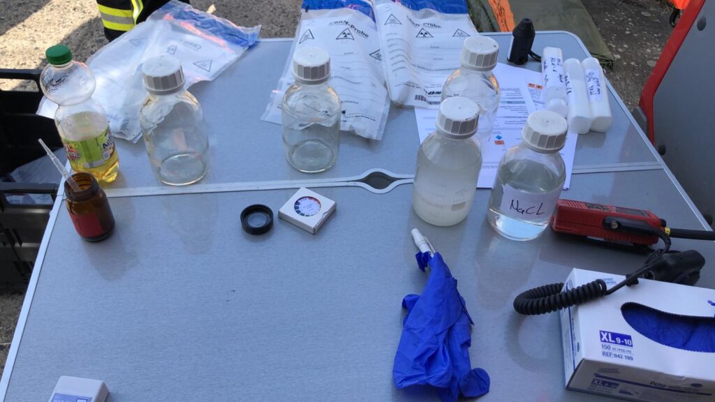 Die kontaminierten Feuerwehrfahrzeuge, Schläuche und Materialien werden im FTZ mit Calciumchlorid-Lösung gewaschen und neutralisiert. Die Einsatzkleidung wird vernichtet werden müssen. Vor Ort neutralisierte der Decon-P des Gefahrstoffzuges die Säure mit zusätzlich mitgeführtem Calciumchlorid .