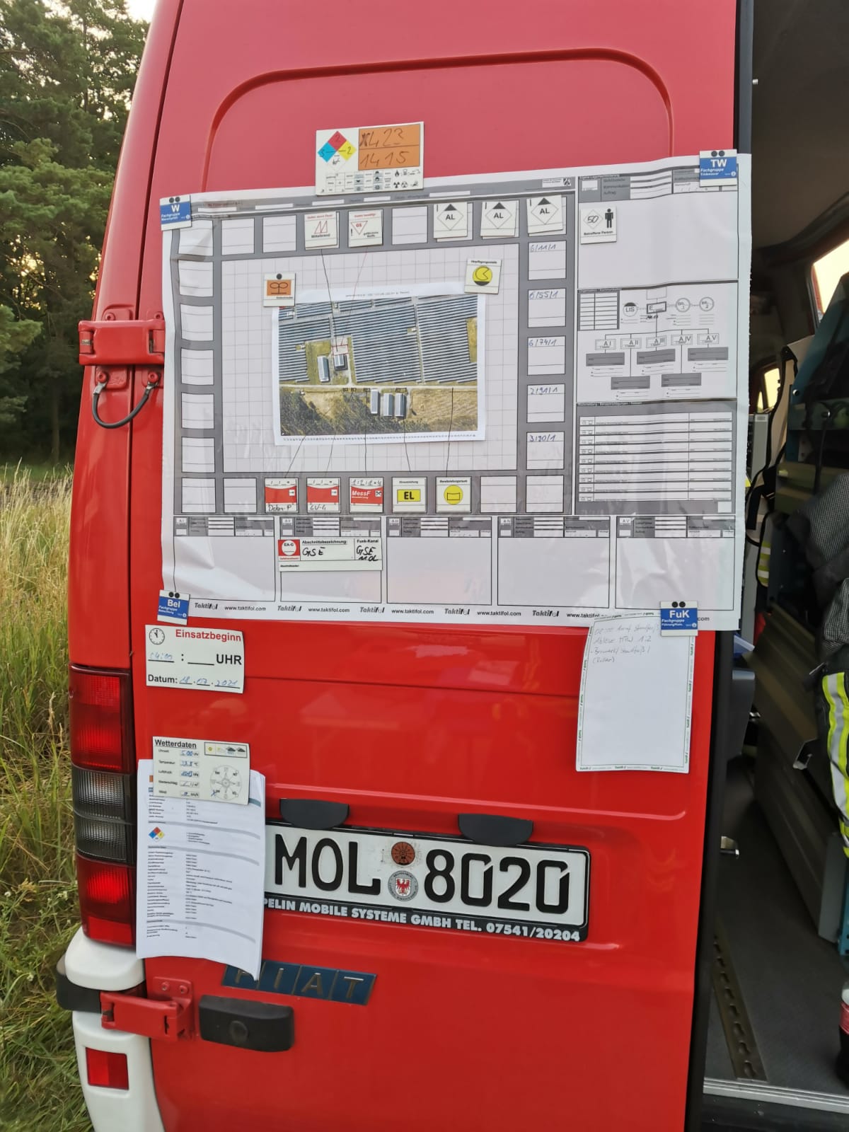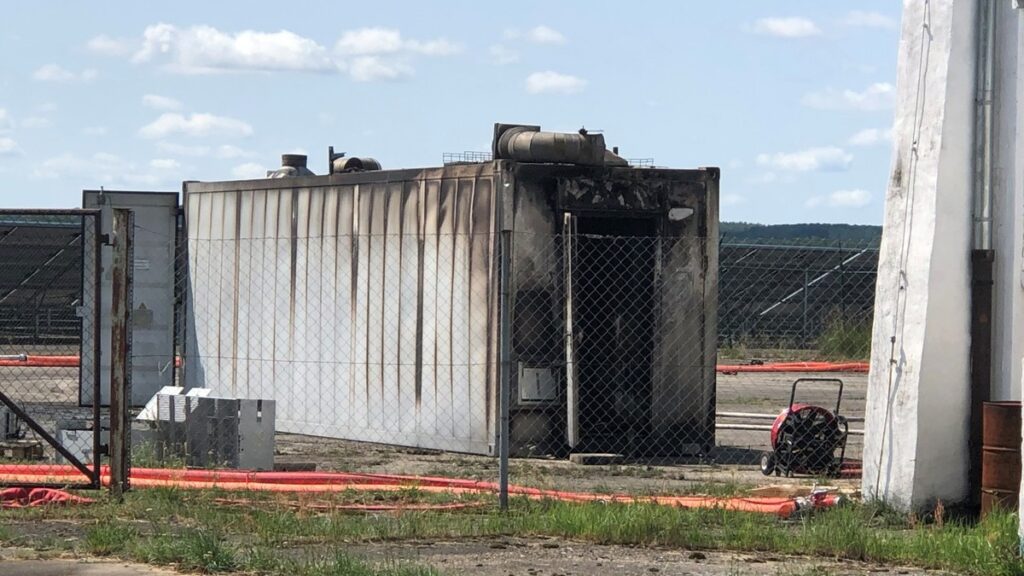 Seit dem Wochenende 17./18.07.2021 Nachts brannte eine 5 Megawatt – Lithium Batteriespeicheranlage in einem Container eines Solarkraftwerkes auf dem Flugplatzgelände Neuhardenberg. Seit Sonntag um 00.20 Uhr bis gegen Mittag waren 113 Einsatzkräfte aus den FF Neuhardenberg, Altfriedland, Quappendorf, Seelow, Hermersdorf, Ihlow, Letschin, Wriezen, Müncheberg, Altlandsberg, Neuenhagen und Petershagen bei Berlin sowie von der Deutschen Lebensrettungsgesellschaft (DLRG) im Einsatz. Vor Ort waren auch der Kreisbrandmeister Sebastian Nestroy.