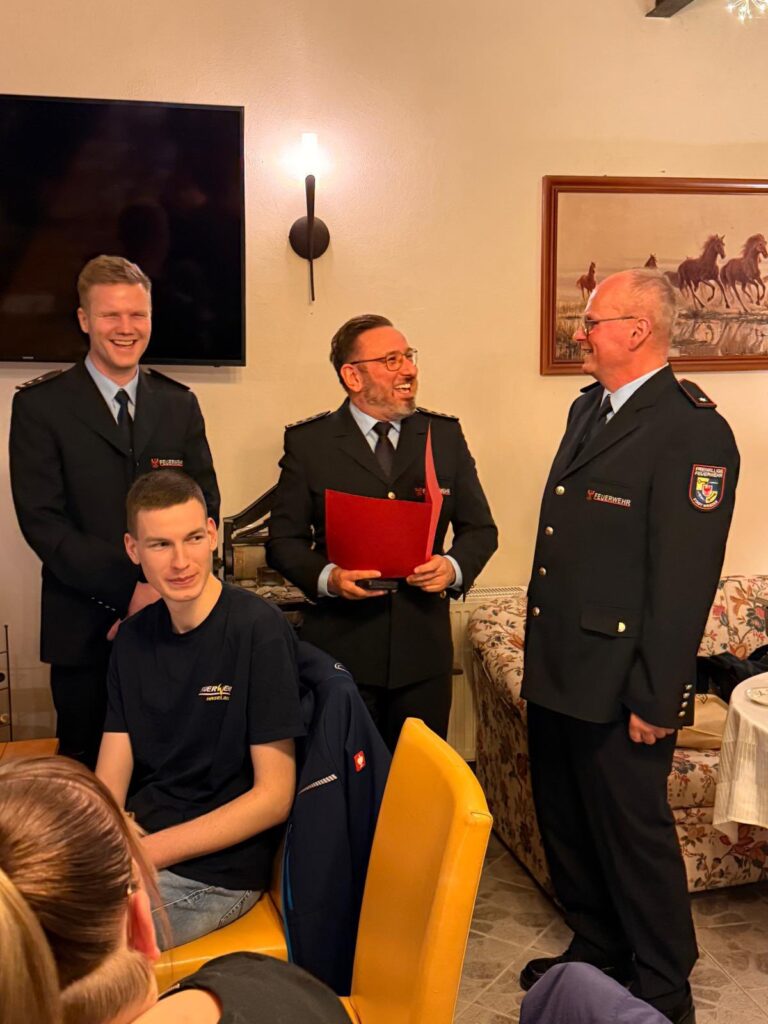 Nach dem Bericht des Ortswehrführers Robert Masche wurden verdienstvolle Kameraden ausgezeichnet und befördert.