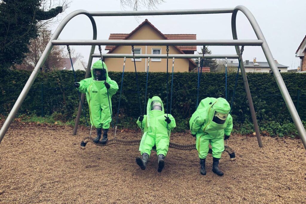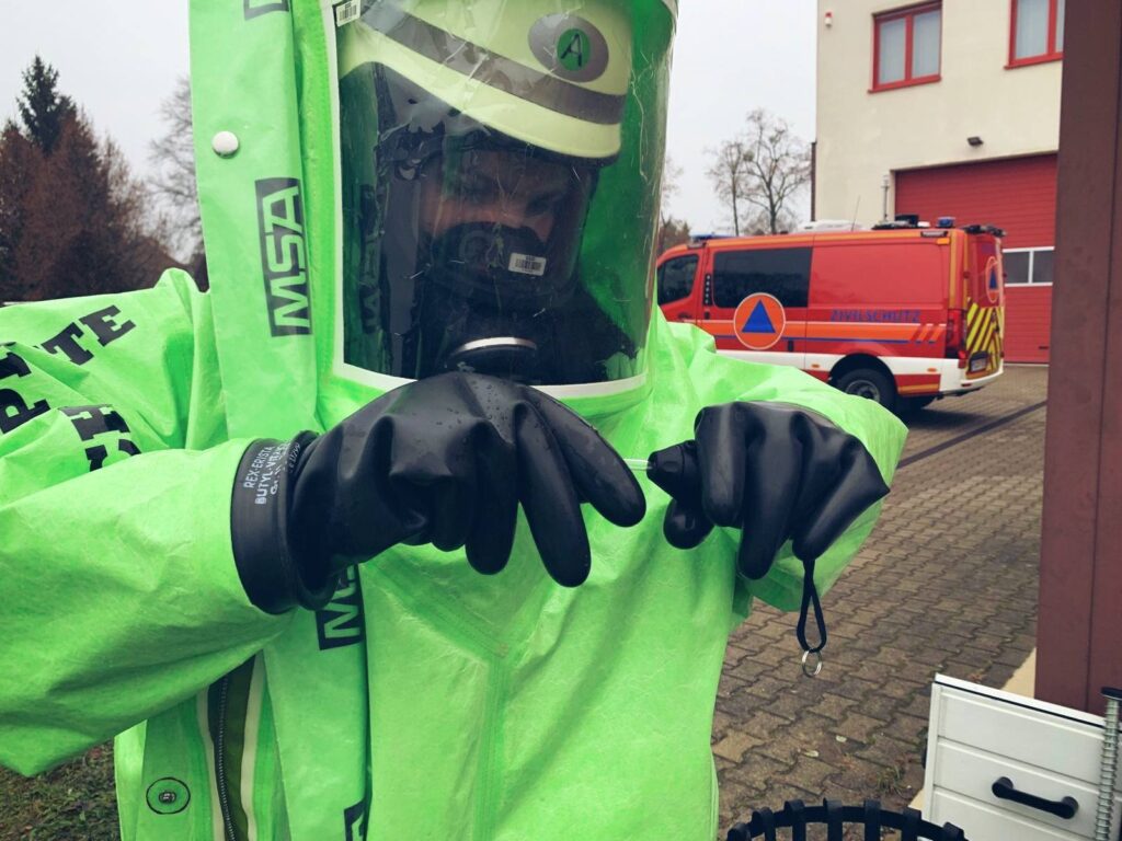 Der Chemikalienschutzanzug schränkt Bewegung, Sicht und Atmung ein. Deshalb braucht es regelmäßiges Training, Fitness und eine ordentliche Portion Durchhaltevermögen, um im Ernstfall sicher und effektiv arbeiten zu können.