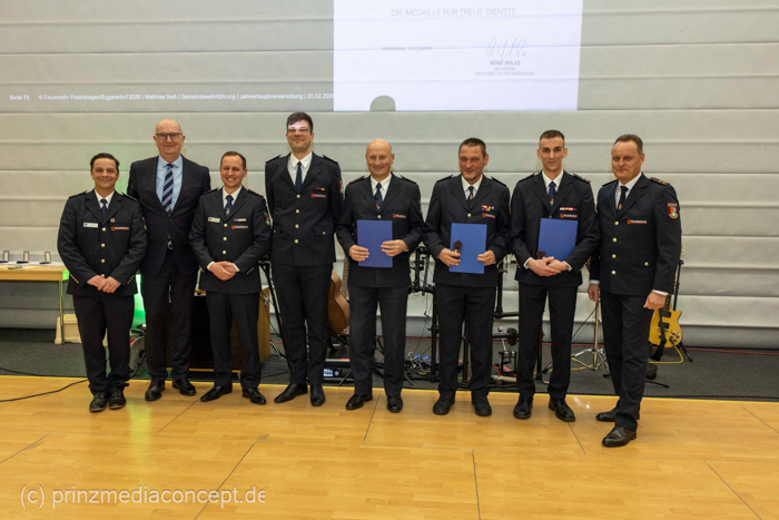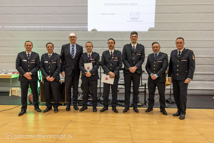 Die Jahreshauptversammlung der Freiwilligen Feuerwehr Petershagen/Eggersdorf fand am 20. Februar in der Giebelseehalle statt. Unter den Gästen war auch unser Ministerpräsident Dr. Dietmar Woidke. Anlass dieses hohen Besuches war die Verleihung der Medaillen für 60 Jahre treue Dienste an den Ehrenwehrführer und ehemaligen Vorsitzenden des Kreisfeuerwehrverbandes Oberbrandinspektor Hans-Dieter Kandzia und an den ehemaligen stellv. Ortswehrführer Hauptbrandmeister Mario Eidekorn.