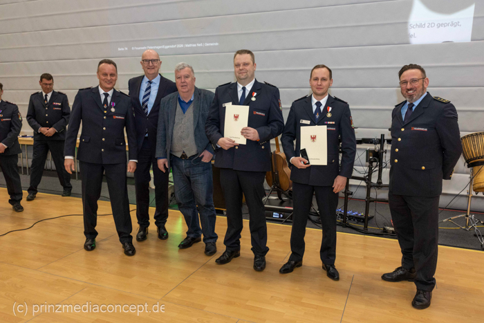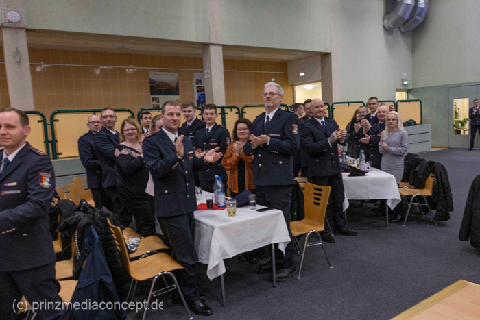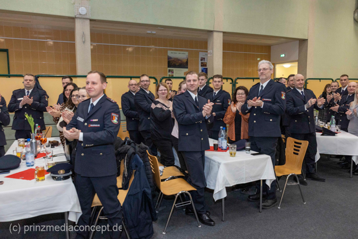 Als Gäste waren auch der Landrat Gernot Schmidt, der Kreisbrandmeister Sebastian Nestroy und der stellv. Vorsitzende der Gemeindevertretung Wolfgang Marx zugegen. Der kürzlich wiedergewählte Bürgermeister Marco Rutter ist selbst Angehöriger der Freiwilligen Feuerwehr und wurde für 30 Jahre treue Dienste ausgezeichnet.