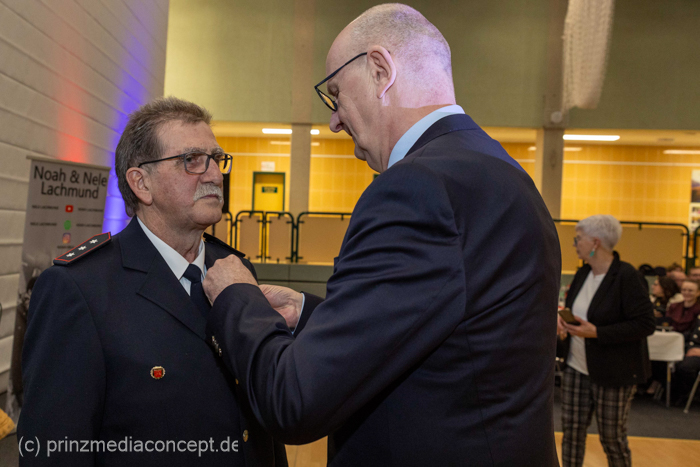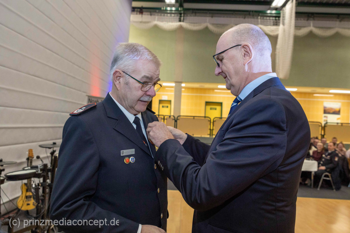 Dr. Woidke nahm die Ehrung persönlich vor und bedankte sich bei beiden Jubilaren und allen Kameradinnen und Kameraden für ihr stetes ehrenamtliche Engagement. Gleichzeitig dankte er auch den Familienangehörigen, die immer Verständnis für die Feuerwehrarbeit aufbringen.