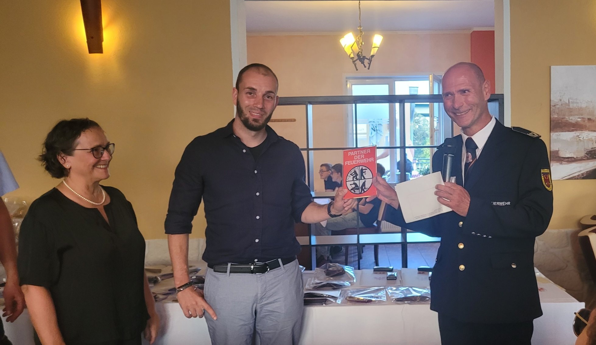 Der Vizepräsident des Landesfeuerwehrverbandes Frank Kliem zeichnete bei dieser Gelegenheit die „Opitz-Gruppe“, ein privates Abriss- und Erdbauunternehmen mit dem Schild ,,Partner der Feuerwehr“ aus. Dieses Schild ist eine gemeinsame Anerkennung des Landesfeuerwehrverbandes und des Innenministerium für langjährige Unterstützung der Feuerwehren. Wir berichteten z. B. über die Hilfe durch schwere Technik bei Waldbrandeinsätzen.