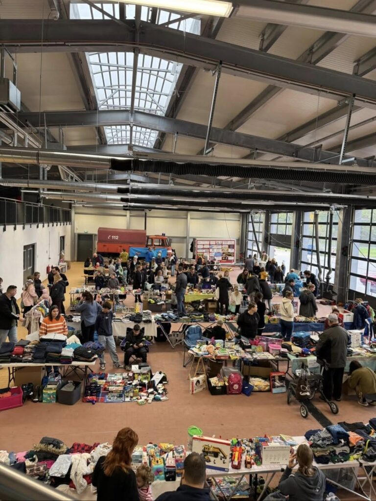 Ab 13 Uhr öffnete zusätzlich das Feuerwehrgerätehaus seine Tore zum Tag der offenen Tür mit Kinderflohmarkt. Trotz des durchwachsenen Wetters war die Veranstaltung sehr gut besucht.